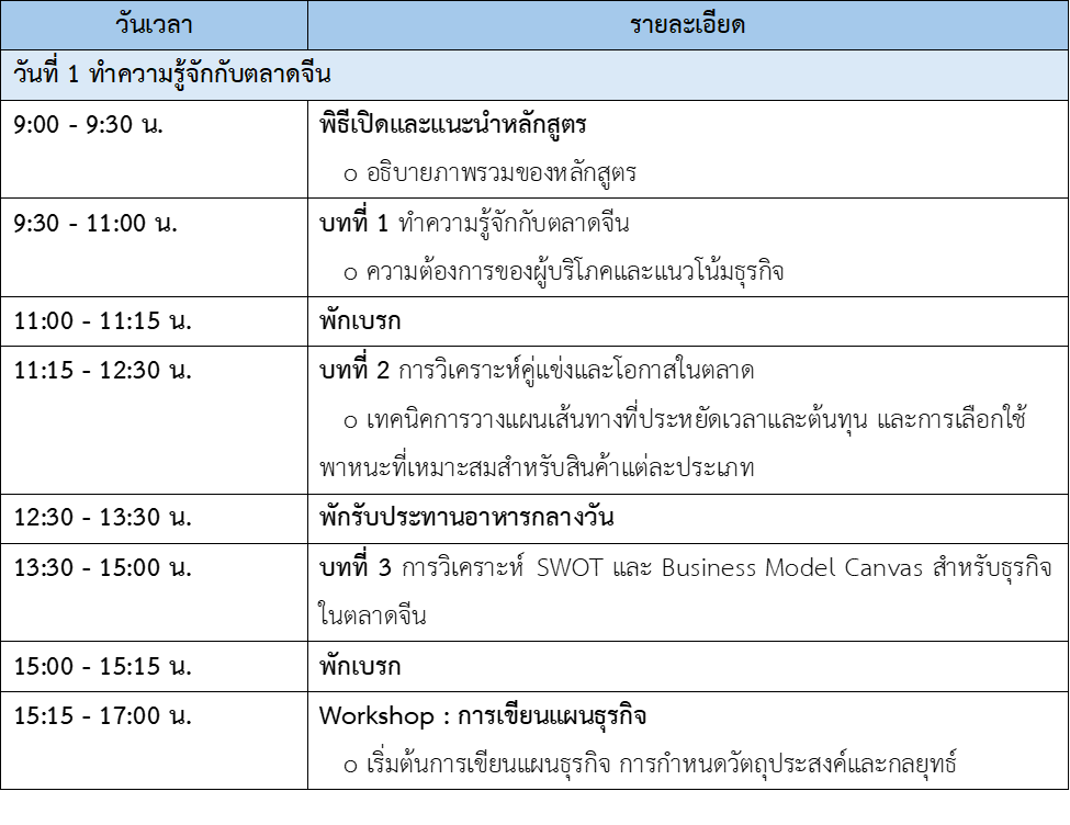หลักสูตร เขียนแผนธุรกิจพิชิตจีน ก้าวสู่ความสำเร็จด้วยแผนธุรกิจที่ใช่