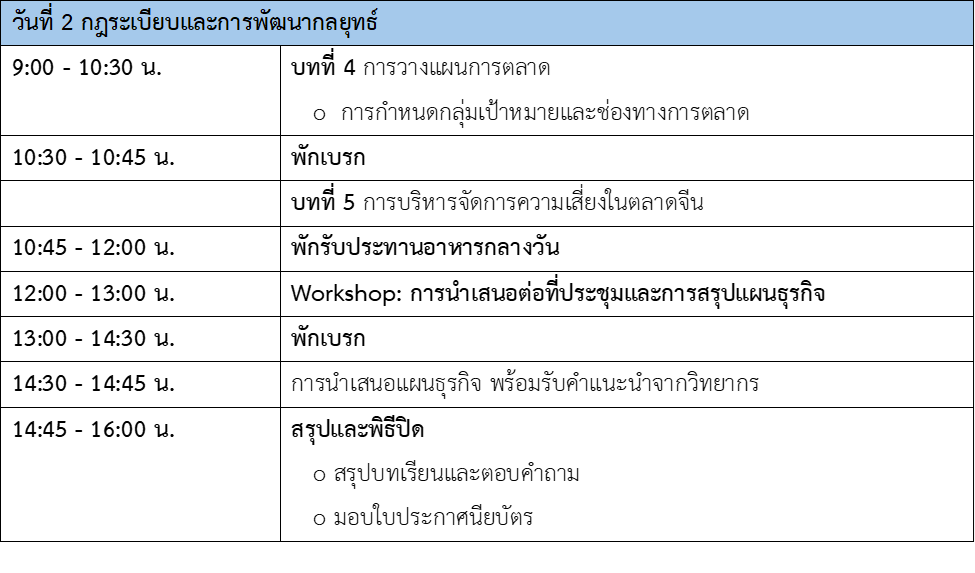 เพื่อเสริมสร้างทักษะการวิเคราะห์และวางแผนการตลาดที่ตอบโจทย์กลุ่มเป้าหมายชาวจีน